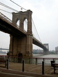 2Av からまた南行きのバスに乗る。前回、Broadway で南に行ったから、今度は他の道を試してみようと思っただけ。そのバスは Brooklyn Bridge の下をくぐるコースを走った。橋の下でバスを降りて、Manhattann 側の橋の下からBrooklyn Bridge を眺める。