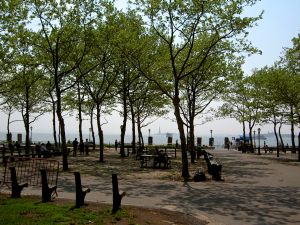 国連方面の East River へ向って歩いていく。国連のちょっと北の FDR の内側にちょっとした公園があった。このあたりは、街と川の間に結構な高低差があって、階段を降りていかないといけない。Manhattan はちっちゃな島なのに意外と高低差がある。